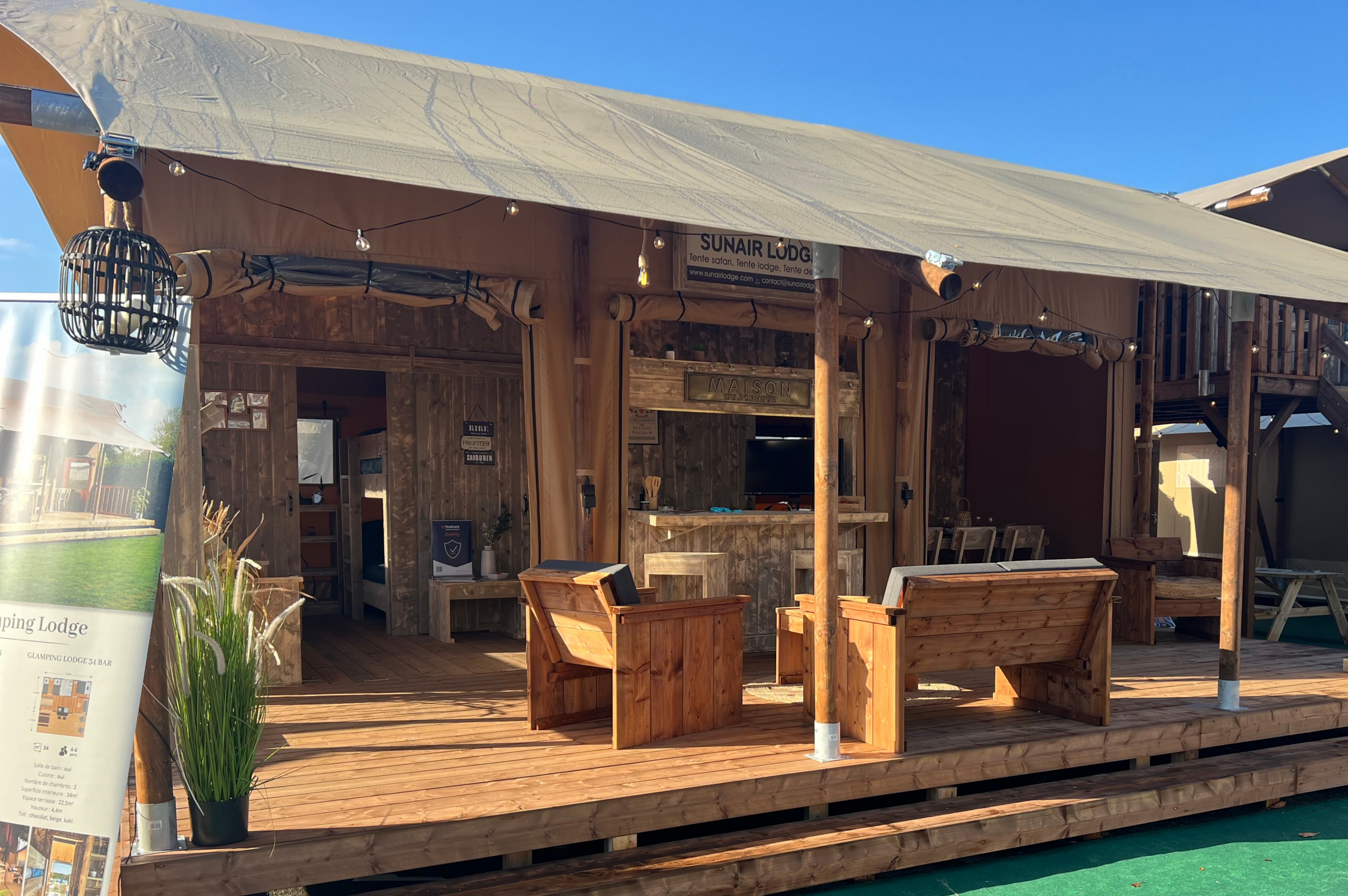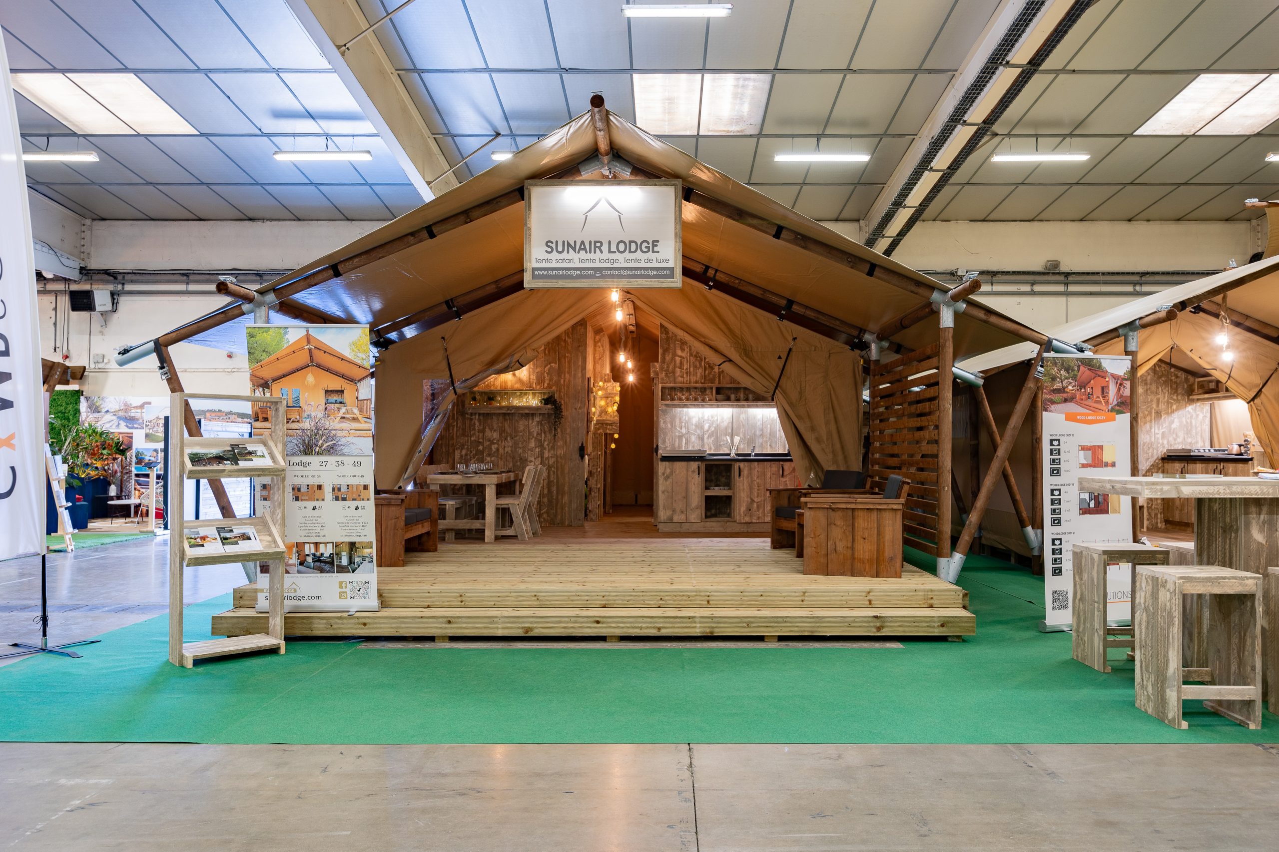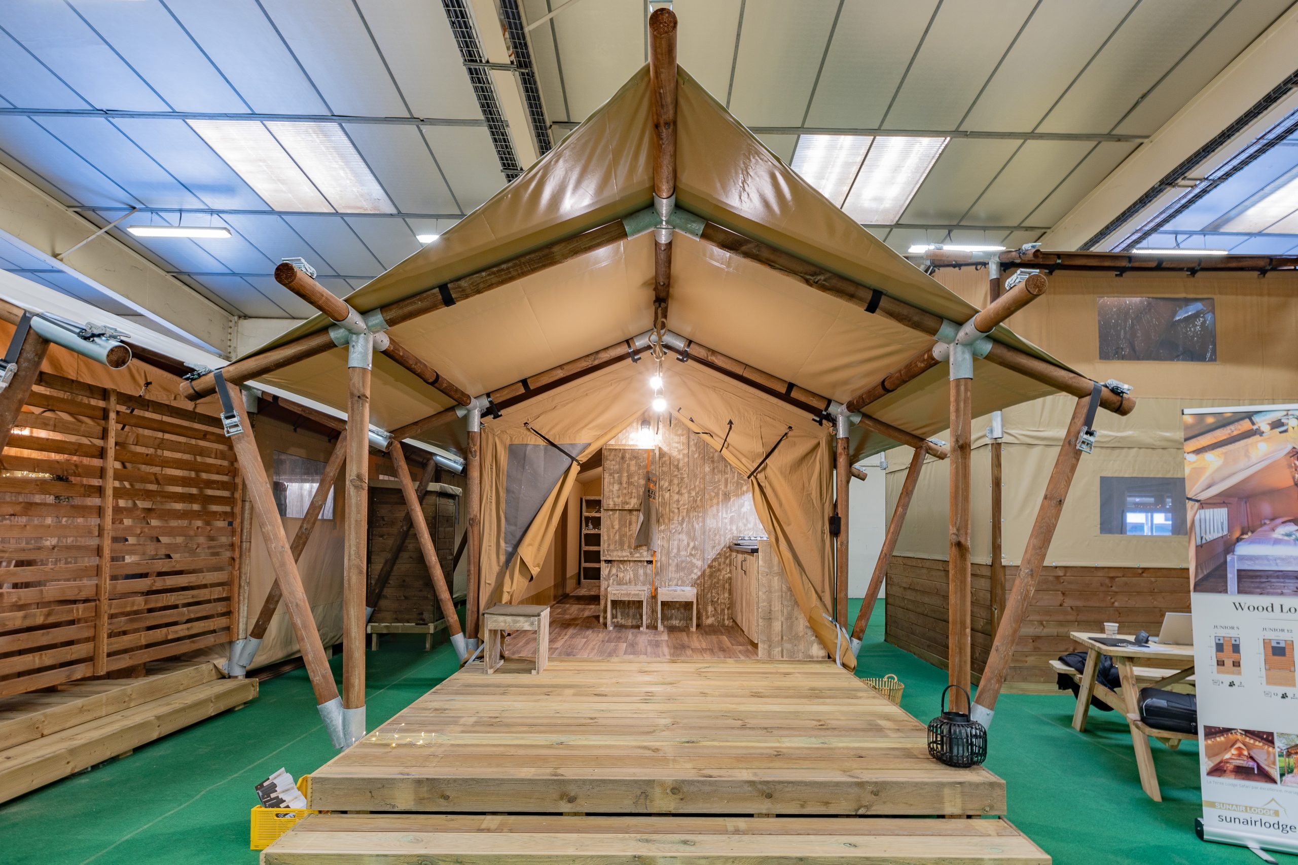 Nos modèles exposés : Village L / Midi Hat Suite / Junior 21 / Wood Lodge 38 / Luxury Safari Lodge