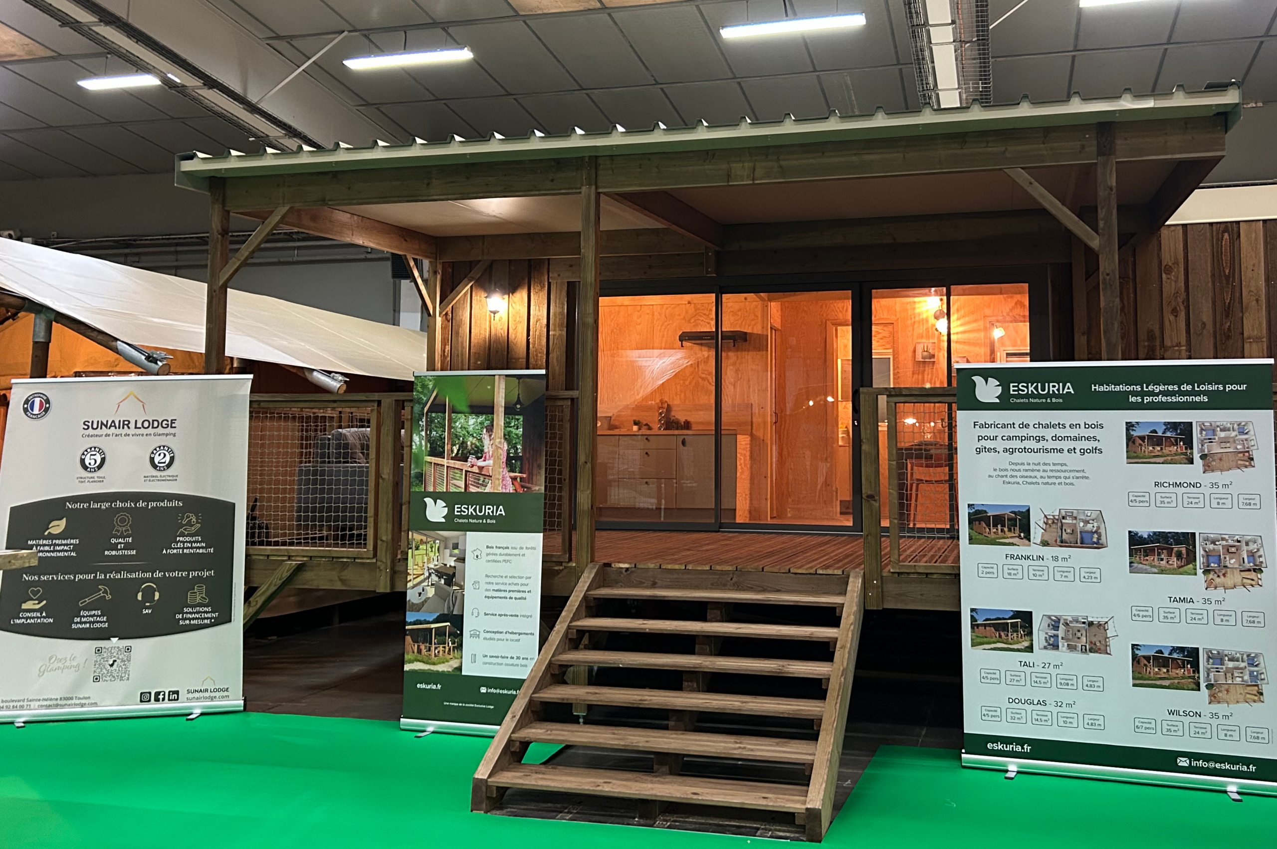 Nos modèles exposés : Glamping Lodge / Midi / Junior 15 / Nature Lodge / Chalet Eskuria