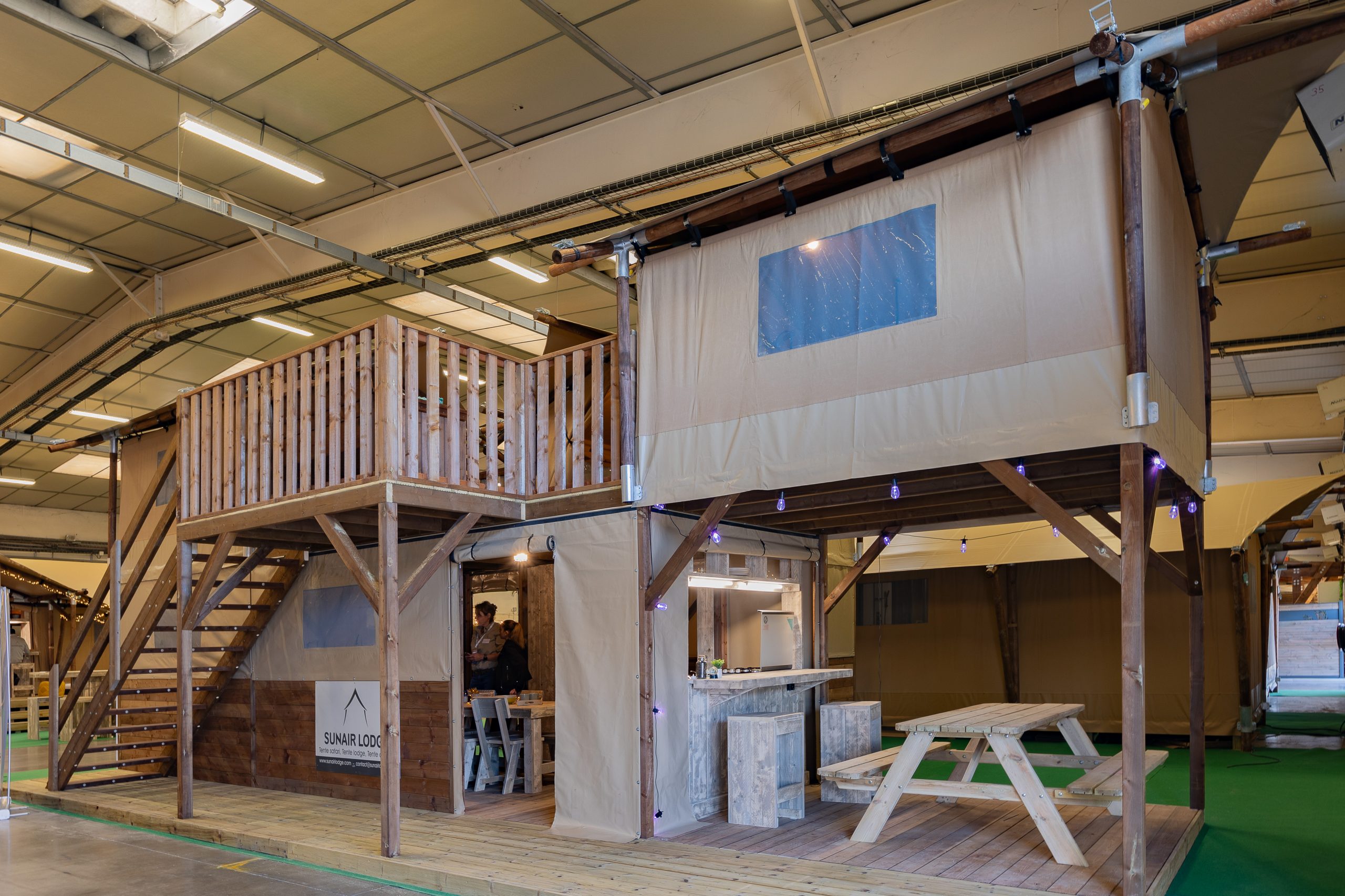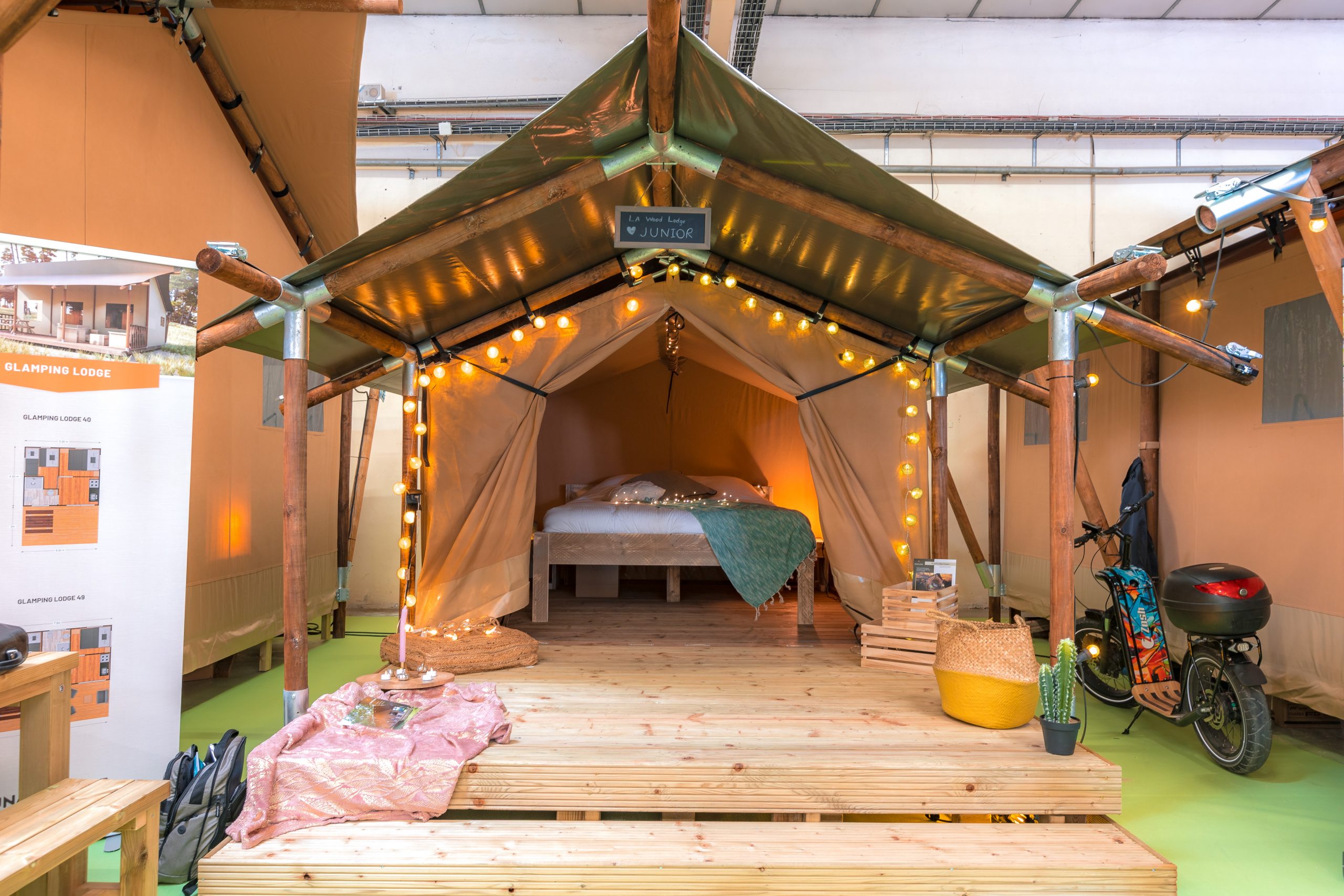 Nos stands sont pensés comme un véritable petit village, avec lits, mobilier et accessoires prêts à l’usage, permettant à chacun de se projeter dans un environnement complet et confortable.